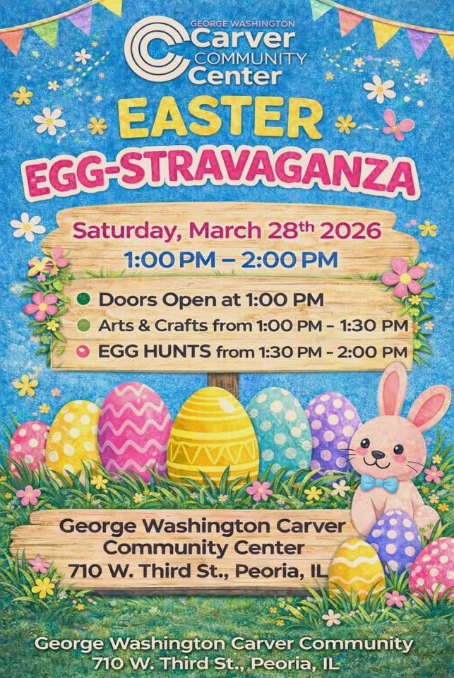 Carver's Annual Egg-Stravaganza is back! Join us on March 28th from 1:00 PM - 2:00 PM for a fun afternoon! We will have Arts and Crafts Stations, Selfies with the Easter Bunny, Community Resources, Egg Hunt, and Snacks. See you there!