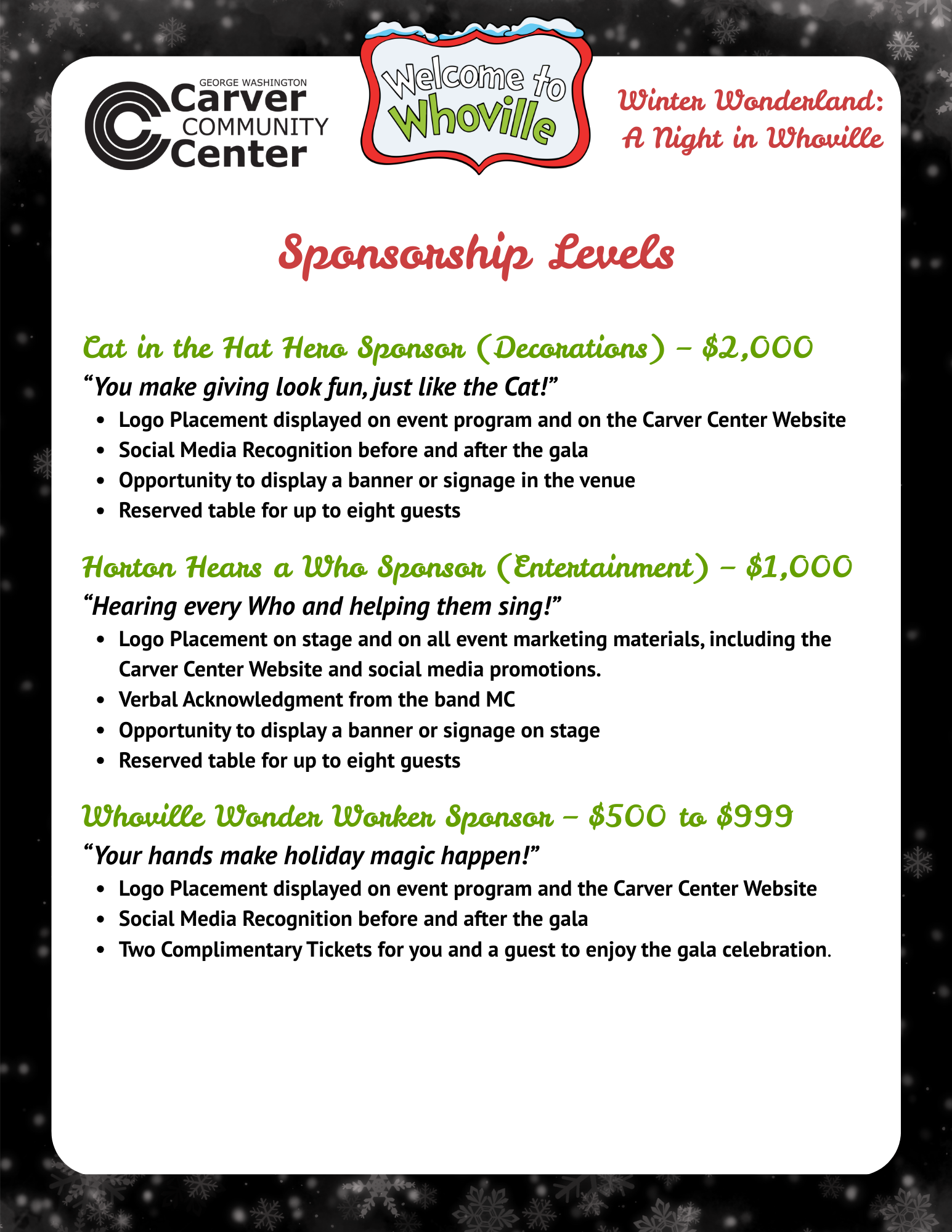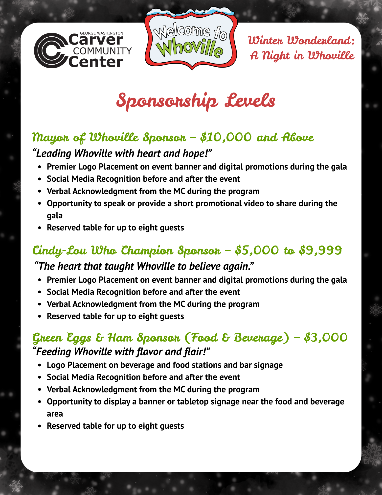 Join us on January 10, 2026 for our annual Winter Wonderland: A Night in Whoville!